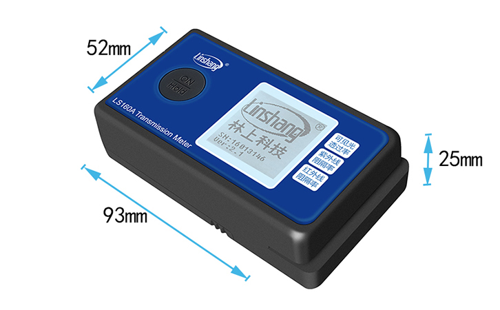 林上LS160A便攜式太陽膜測試儀(transmission meter)主要用于汽車太陽膜或建筑膜透過率測試,可同時測試材料(如太陽膜,防爆膜,鍍膜材料和涂料等透光物質)的紅外線,紫外線阻隔率測試,以及可見光的透過率測試。紅外線中心波長1400nm,體積只有煙盒大小,是款真正的口袋式建筑膜測試儀,便于外出隨身攜帶。屬林上科技專利產品: